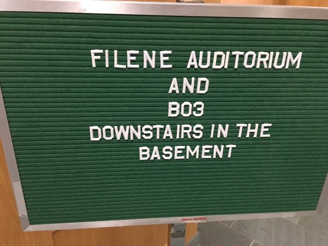 I’d never been to the town of Hanover before and it seemed lovely and absolutely full of students. The panel and reception were held in the Filene Auditorium, which, of course, was in the basement. NYT bestseller and author of the recent hit The Mere Wife, Maria Dahvana Headley, the principle award judge for the award this year, was the chair of the panel (bad pre-panel pictures below, sorry!) and she had some fine questions for Martinez (who was brought in from Chicago) and Duyvis (who came in from Amsterdam) — Lavie Tidhar was travel-delayed as he came in from London and arrived in time for the reception.